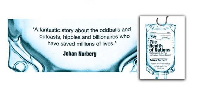 To this day smallpox remains the only disease to be eradicated but, as my bookThe Health of Nations explores, the eradication of a second disease, polio, is now tantalisingly close – an epic achievement brought about by the announcement fifty-two years ago that Dr Jonas Salk had developed the Inactivated Polio Vaccine (IPV) which, followed by the introduction of Albert Sabin’s Oral Polio Vaccine (OPV), led polio cases to plummet around the world. In the US, polio cases fell by 80-90% in the two years following the introduction of the polio vaccine, while no naturally occurring cases of polio have been reported in the UK since 1982.